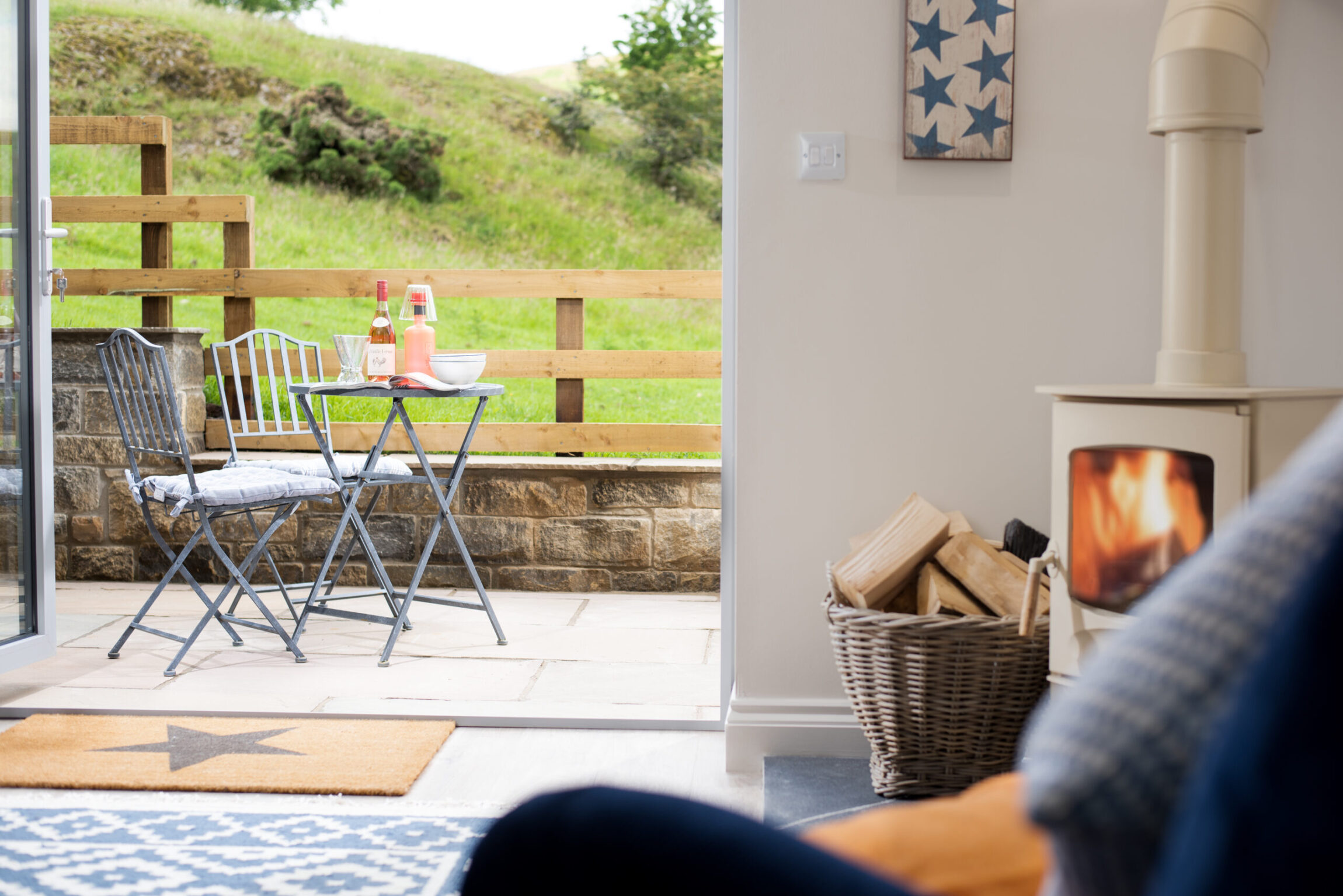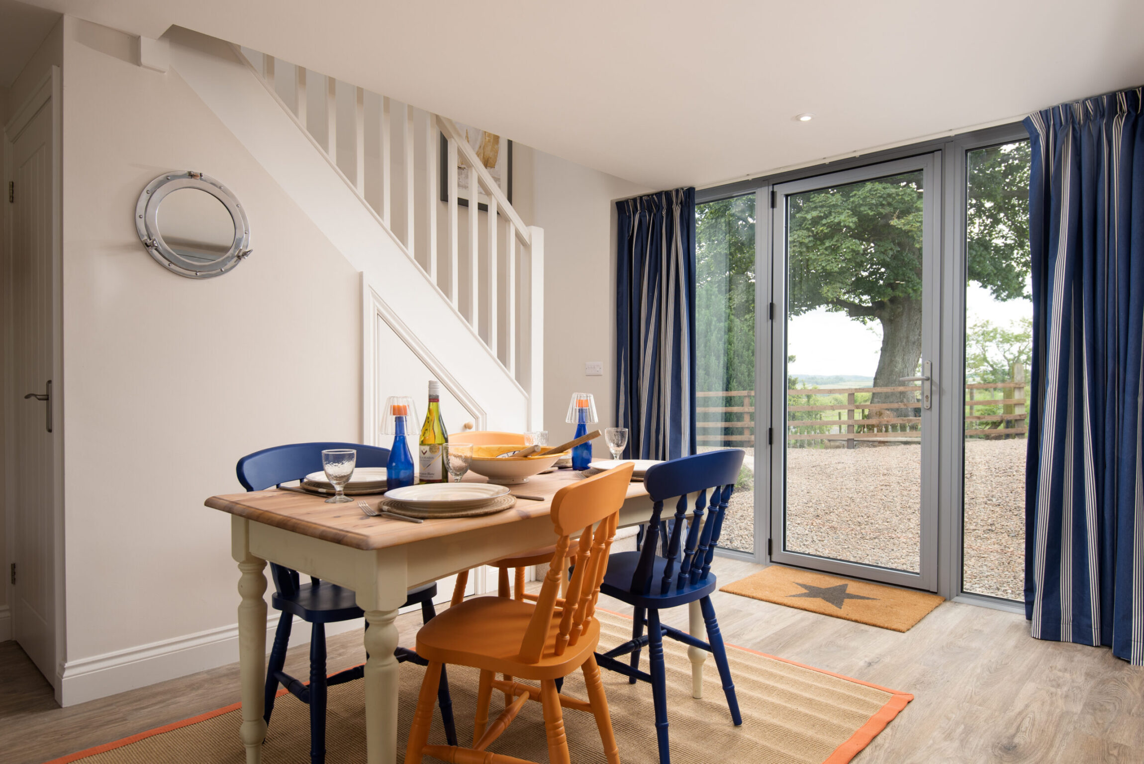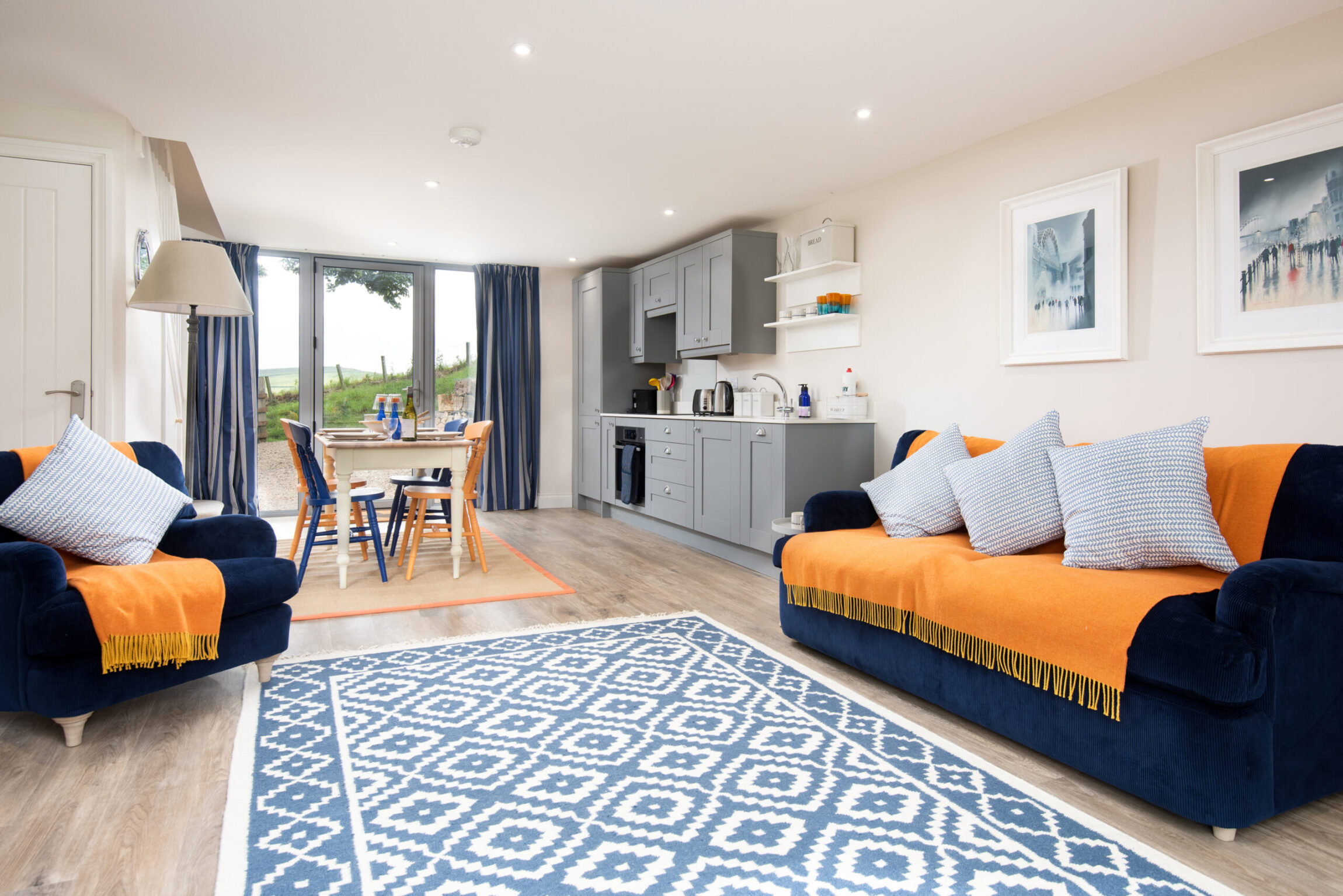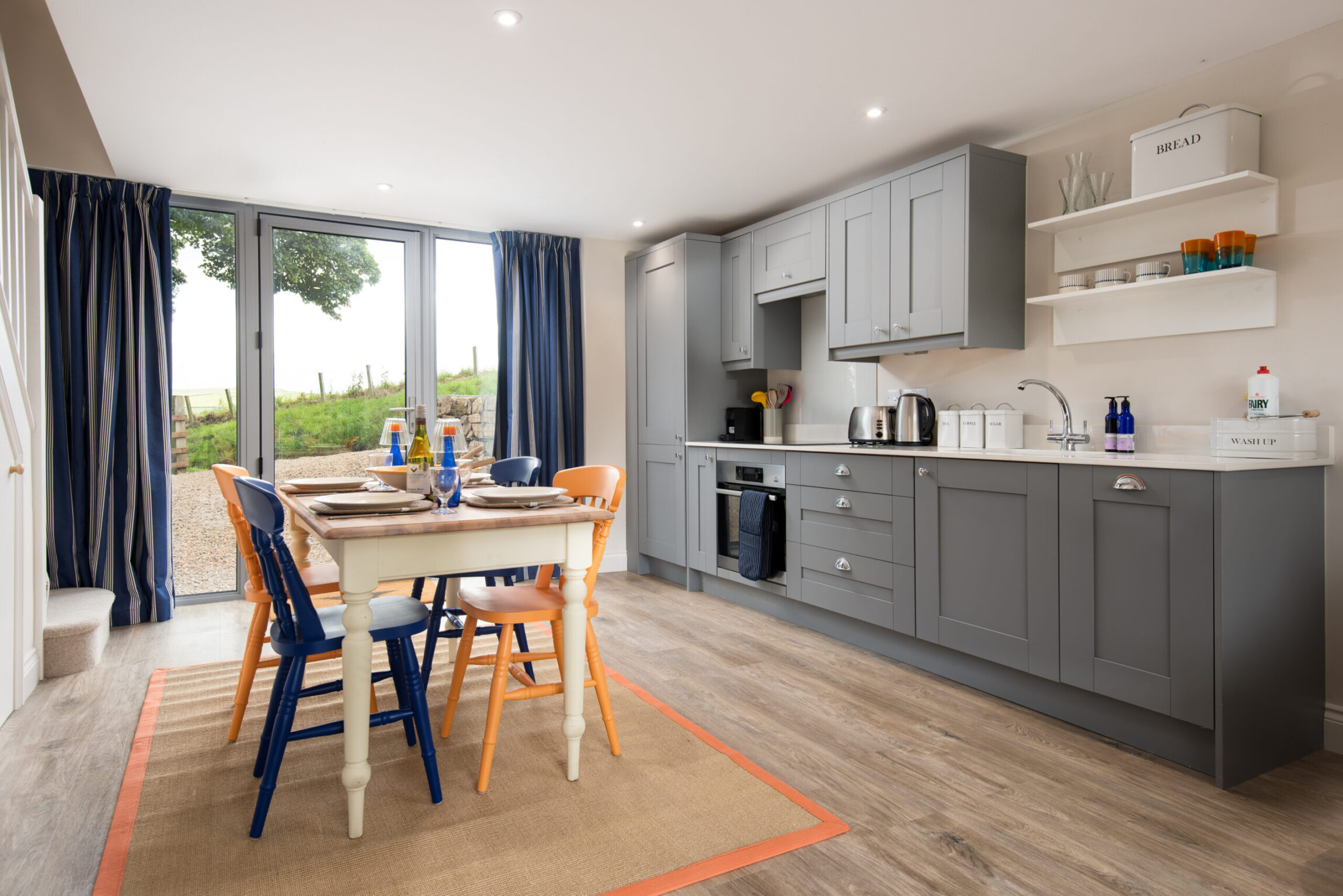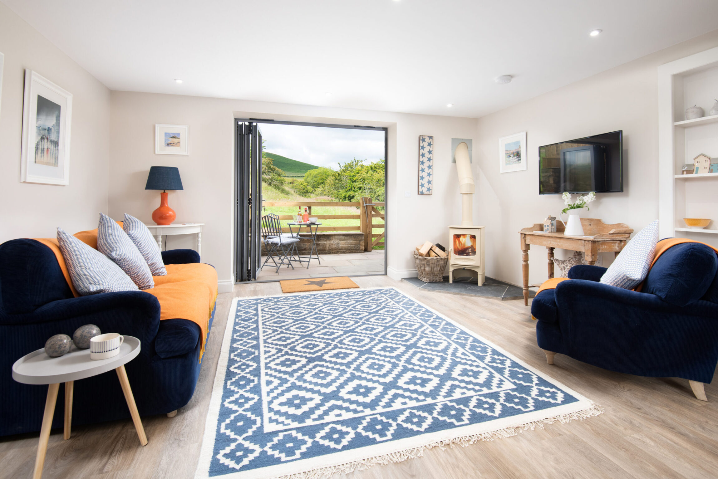 Views beyond the bifold doors catch your eye as you walk through Lucy’s door. They open onto the garden – a vast space where you can unwind, enjoy your meals, or explore the fields that lie beyond.